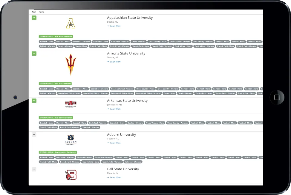 Access to all NCAA, NAIA, CCCAA & NJCAA colleges and coaches